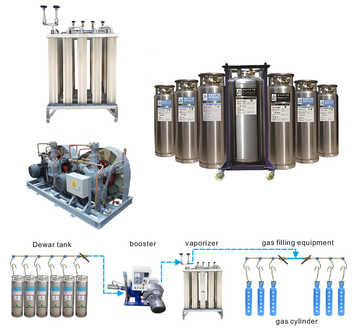 Het medische vloeibare zuurstofsysteem wordt gebruikt voor de productie, opslag en transport van vloeistoffen met lage temperatuur. Het wordt veel gebruikt in medische, industriële, agrarische, nationale defensie- en wetenschappelijke onderzoeksindustrie. In vergelijking met de traditionele stalen gascilinder heeft het de voordelen van handig transport, energiebesparing, veiligheid en betrouwbaarheid.